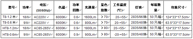 led灯管技术参数: