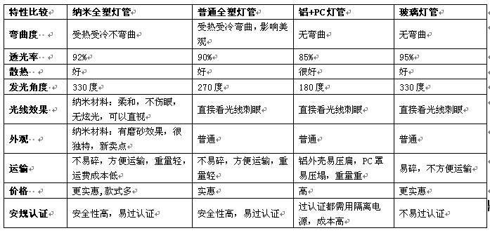 各种led灯管特性比较