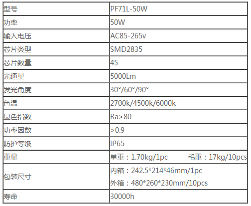 led泛光灯技术参数