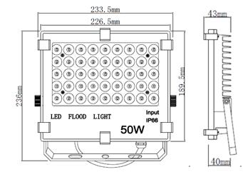 LED泛光灯产品特点: 1外壳采用高压铸铝,散热性能好 2薄灯体,体积小、重量轻,精致美观 3灯体采用钢化玻璃和防水硅胶密封,防护等级IP65 4光源均采用高流明LED芯片,内置恒流电源 5反光杯多种角度可选,既可用于泛光大面积照明也可用于投光远距离照明。 适用范围: 建筑物、体育场、广场、码头、绿化照明、广告、大厦外景、车站、铁路、隧道、港口等户外照明 LED泛光灯尺寸: