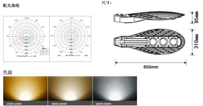 2.光学玻璃透镜,可靠的二次光学设计及的角度定位,提高光照效果;有TYPEⅡ TYPEⅢ等多种配光方式,适用于二车道三车道四车道等多种路面;