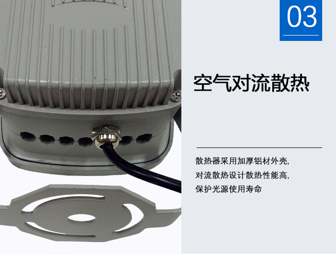 4、灯体加厚铝材外壳,对流散热设计散热性能高,保护光源使用寿命