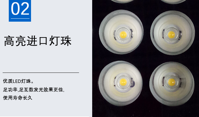 1、LED灯珠。足功率,足瓦数发光效果更佳,使用寿命长久